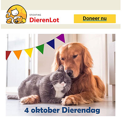 Daarom is uw hulp nodig, want op Dierendag verdienen alle dieren een extraatje, óók de dieren in nood!
