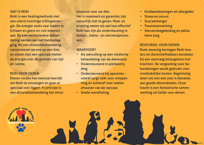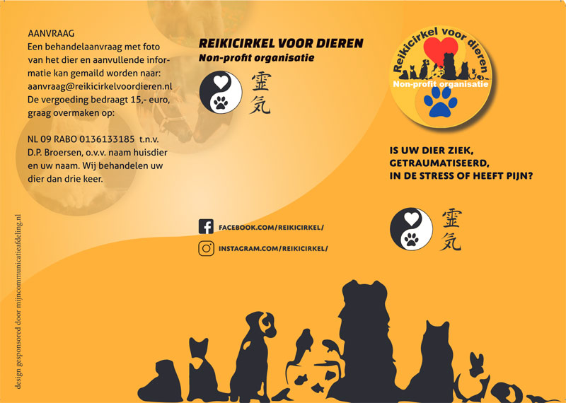 Met gepaste trots laten we jullie hierbij de nieuwe A 4 poster en de uitdeelfolder van onze Reikicirkel voor Dieren zien!