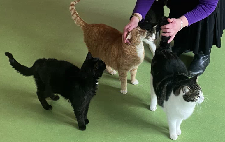We kwamen natuurlijk handen te kort, want hoe heerlijk is het als er visite komt! En dan liefst met zijn vieren tegelijk een aai willen! Blij en dankbaar voor een stukje liefdevolle aandacht!